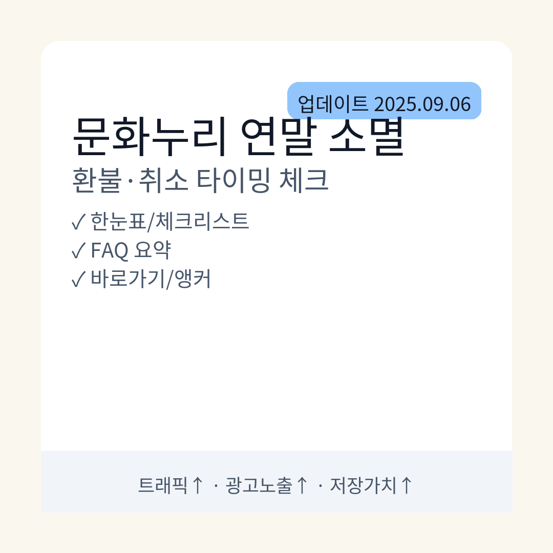 문화누리카드 연말 소멸 주의! 환불·취소 타이밍 ‘체크포인트 5’