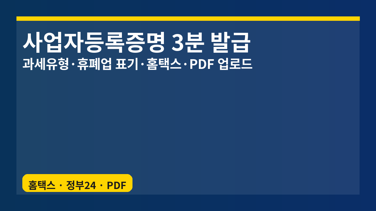 | [3분 발급] 휴·폐업 사실증명 — 홈택스·대출/입찰 제출·PDF 업로드 (0) | 2025.09.02 |